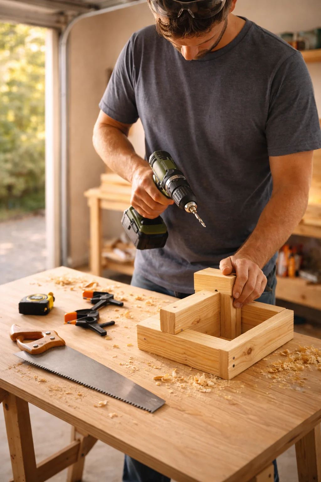 A proper workbench is ideal, but not essential at the start. A pair of sawhorses (around $30–$50 for a basic set) gives you a flexible, portable work surface for cutting and assembling.